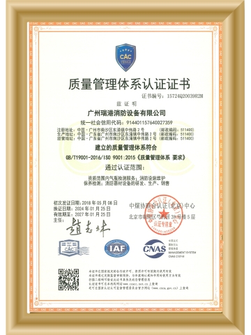質(zhì)量管理體系認(rèn)證證書